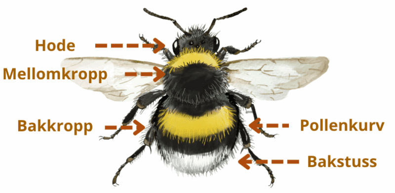 For å se forskjellen på ulike humlearter, er det viktig å vite litt om humlenes anatomi.