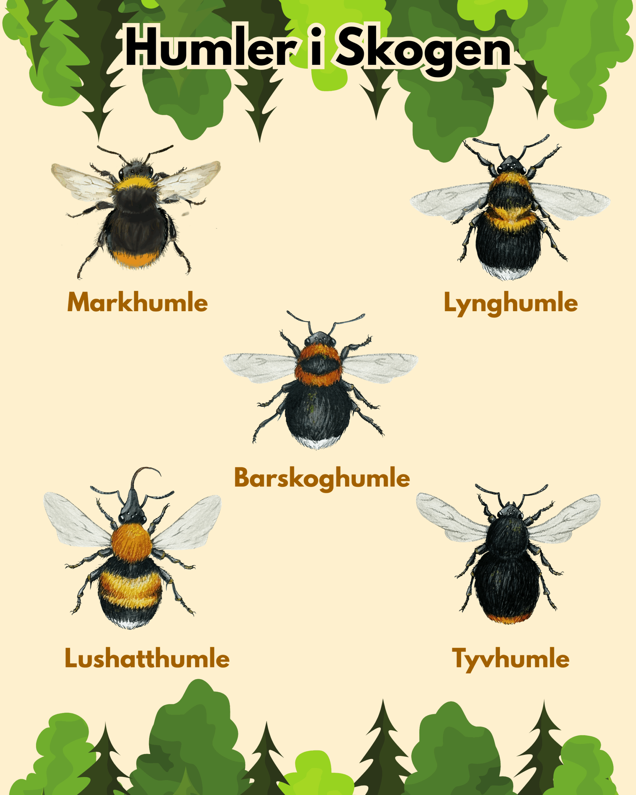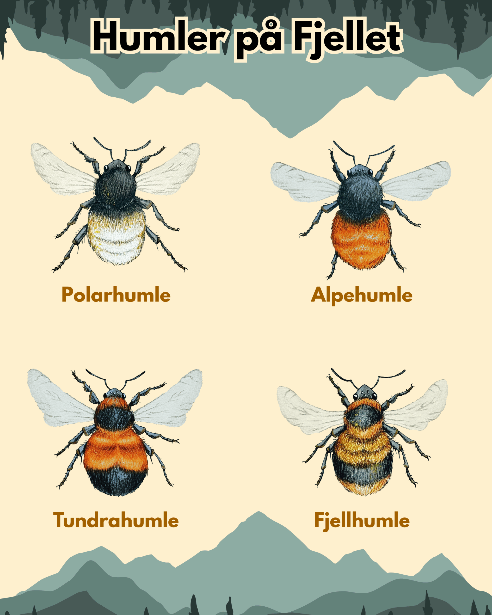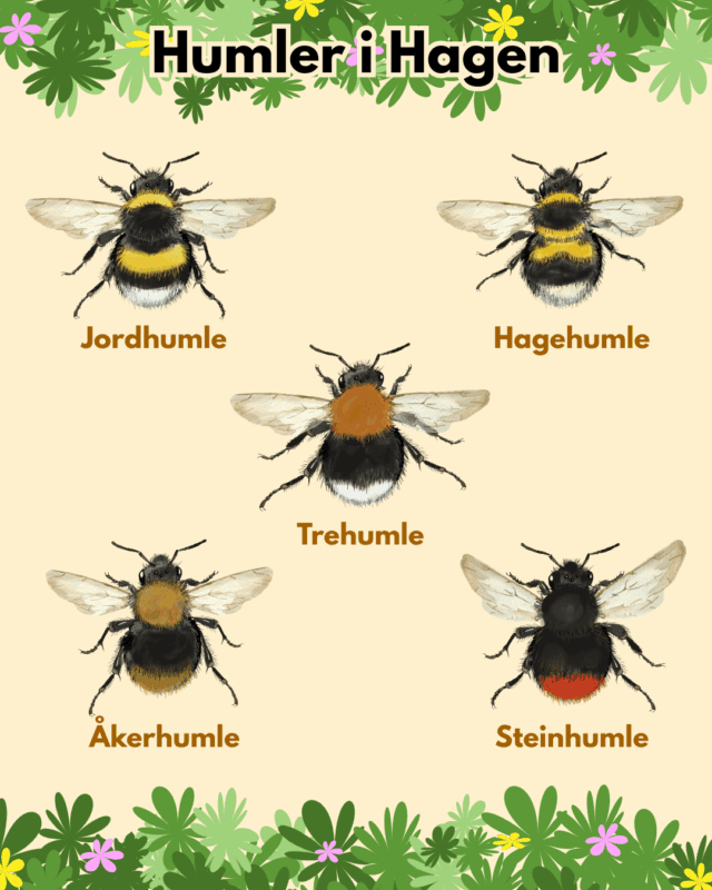 Det er stor variasjon mellom artene på fargemønster, størrelse, levevis og leveområder, og gjennom denne artikkelen vil dere bli bedre kjent med våre vanligste humler, og hvordan dere kan artsbestemme humler på egen hånd.