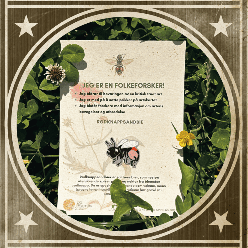 Funnene og registreringene du gjør øker kunnskapen som kan brukes til å ivareta artene i naturen. Er du så heldig at du finner en rødknappsandbie, så får du i tillegg en flott premie av La Humla Suse for ditt/dine funn.